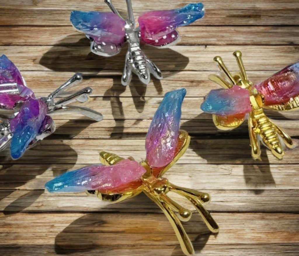 Aura Blue, along with Blue and Green crystals and Pink Amethyst, creates a blend of energies that nourish the mind and spirit. Aura Blue is known for its calming effects, enhancing communication and promoting inner peace while alleviating stress. In contrast, Pink Amethyst offers a nurturing energy linked to the heart chakra, aiding emotional healing and fostering self-love. Together, they encourage emotional healing, spiritual growth, and personal transformation. Whether used in meditation, home decor, or jewelry, these crystals promote peace, love, and understanding, enriching spiritual practices and overall well-being..